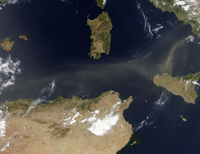 De nombreux transports d’aérosols originaires du désert ont été observés au-dessus de la Méditerranée pendant la campagne. Les mesures ont mis en évidence une structure verticale complexe. Dans l’atmosphère, les aérosols d’origine marine ou issus de la pollution se retrouvaient près de la surface, tandis que plus haut, les poussières désertiques étaient dominantes.