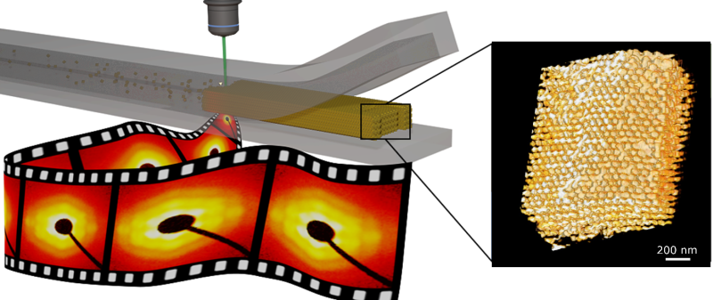 En utilisant un dispositif microfluidique, des chercheurs et des chercheuses ont synthétisé un supracristal de nanoparticules d'or de taille millimétrique, tout en visualisant au fur et à mesure sa croissance à l'aide de la diffusion des rayons X.
